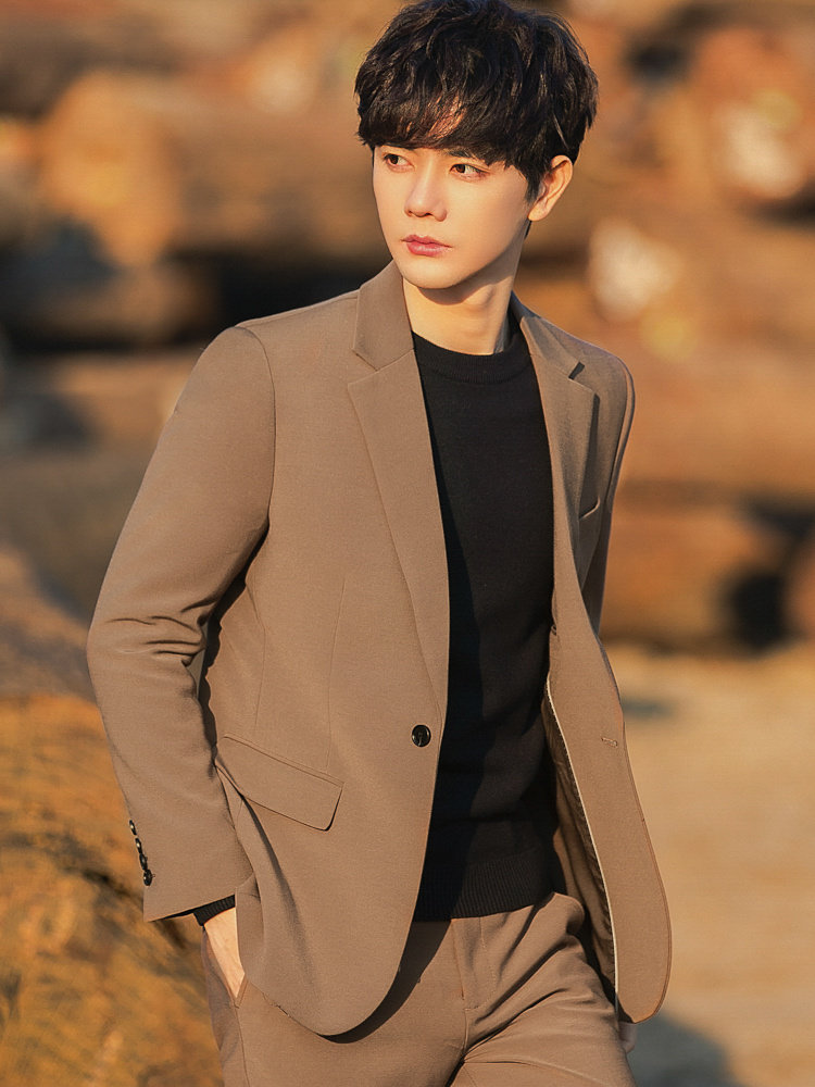 洗練されたシルエットが魅力のメンズカジュアルスーツのセットアップです。 ジャケットとパンツを組み合わせた上下セットで、様々なシーンで活躍します。 一つボタンのテーラードジャケットはすっきりとした印象を与え、細身のシルエットが現代的なスタイルを演出します。 ニットやシャツとの相性も抜群で、ビジネスからカジュアルまで幅広くお使いいただけます。