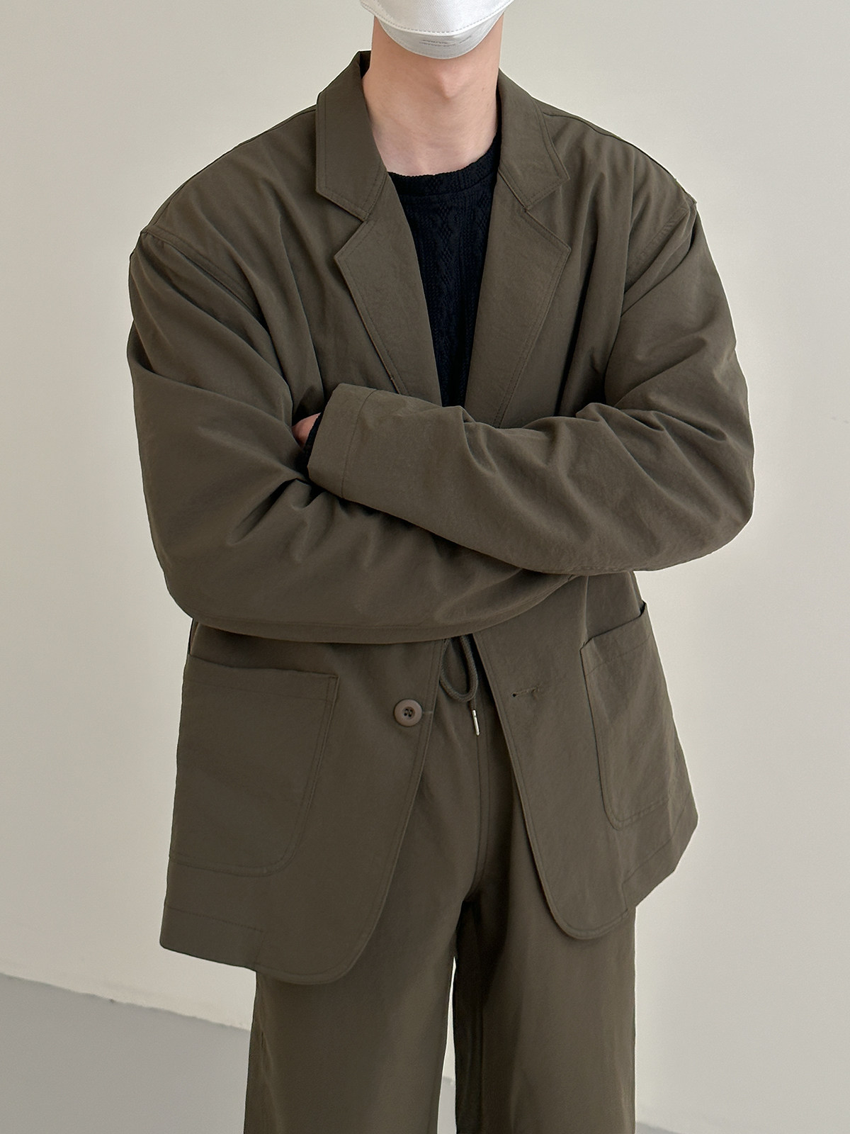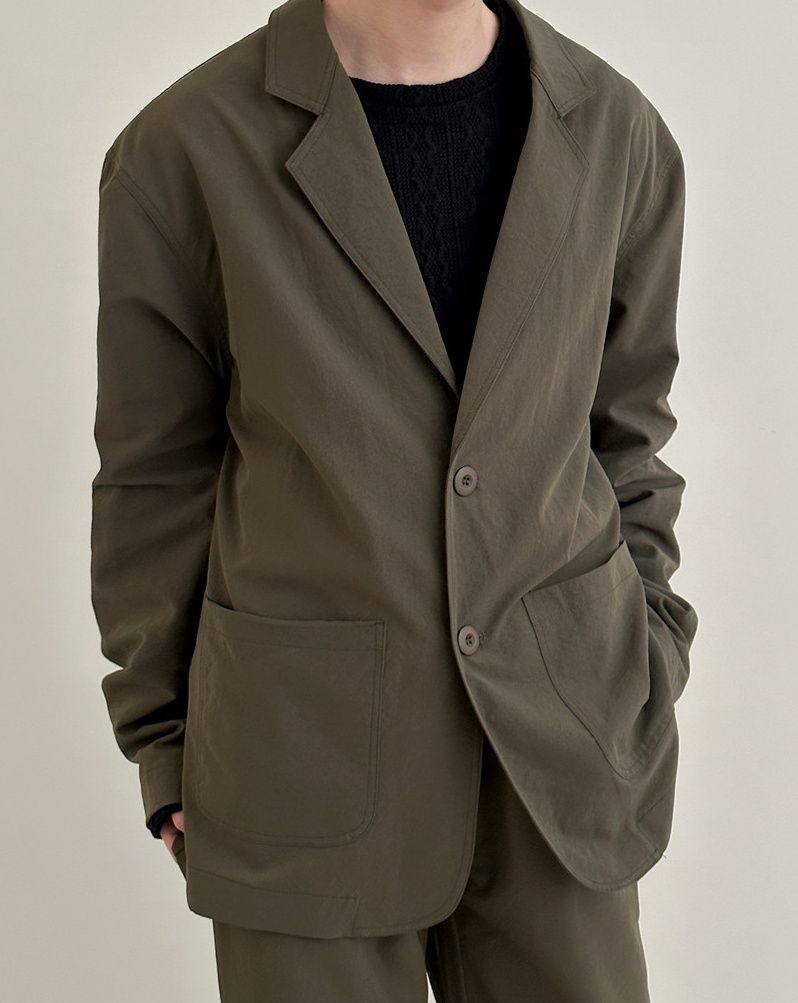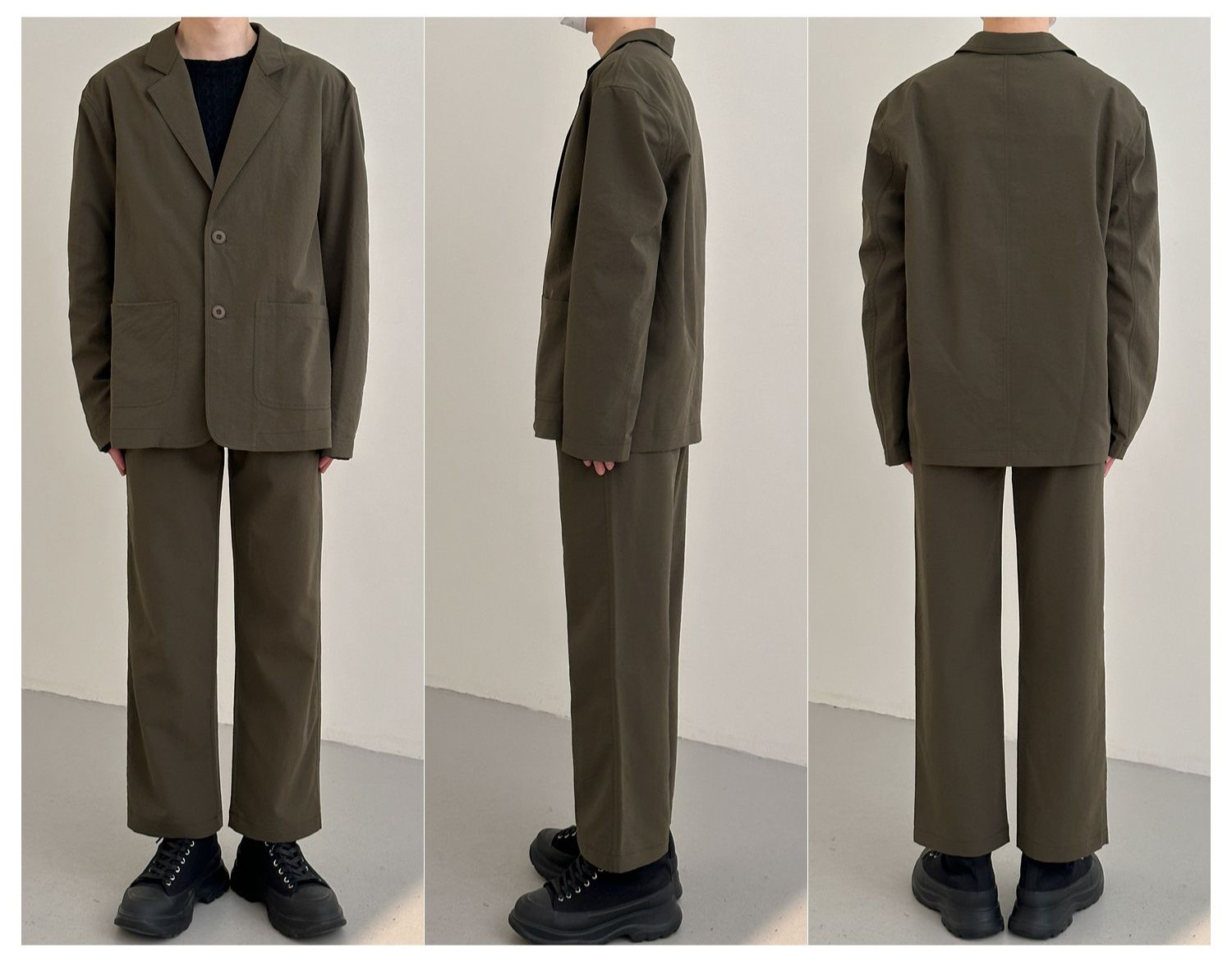 リラックス感のあるゆったりシルエットが魅力のメンズカジュアルスーツのセットアップです。 二つ釦のテーラードジャケットとワイドパンツの組み合わせで、こなれた雰囲気を演出します。 大きめのフラップポケットがアクセントになり、カジュアルな着こなしにも最適です。 ジャケットとパンツを別々に着回しできるので、幅広いコーディネートが楽しめます。 日常使いから休日のお出かけまで、シーンを選ばず活躍する万能なセットアップです。