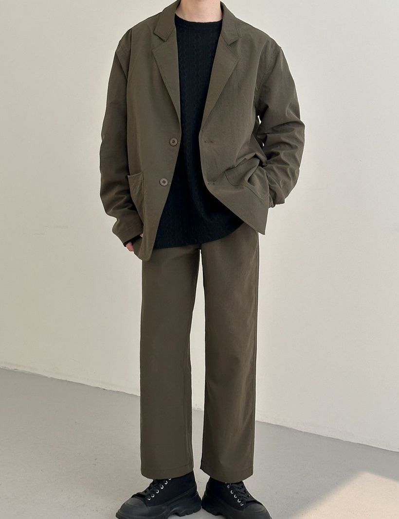 リラックス感のあるゆったりシルエットが魅力のメンズカジュアルスーツのセットアップです。