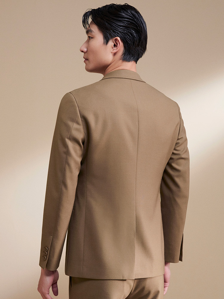 上品なノッチドラペルと洗練されたボタンディテールが都会的な印象を演出します。