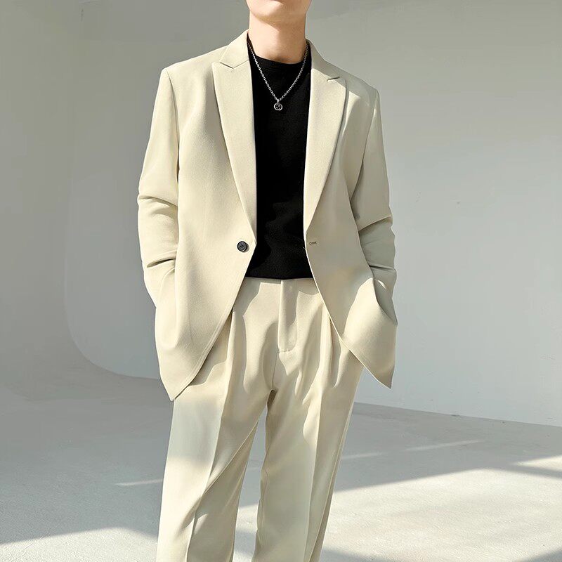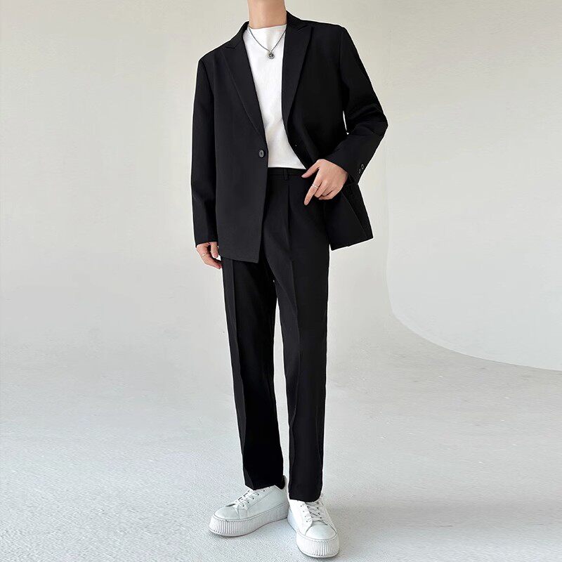 都会的な雰囲気を演出するメンズカジュアルスーツのセットアップです。 一つ釦のテーラードジャケットとワイドシルエットのスラックスを組み合わせ、こなれ感のある着こなしを実現します。 程よいゆとりのあるシルエットで、リラックスした雰囲気ながらも上品さをキープ。 通勤からデート、パーティーまで幅広いシーンで活躍する万能アイテムです。 単品での着回しも可能で、日常使いしやすい一着となっています。